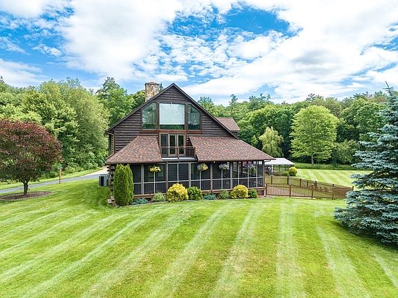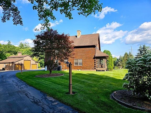 A TRULY EXCEPTIONAL PROPERTY, down a 200' estate drive sits a gorgeous log home on 5+ acres of parklike grounds,PLUS an adjacent 1.18 acre building lot ,PLUS a deluxe 3 bay garage (heated) with 12' pull thru middle door. Open concept Post & Beam charm throughout kitchen ( 2017) dining room & living room with impressive fieldstone fireplace, 2nd floor features loft style great room with soaring cathedral ceiling,refinished wood floors (2023)and exterior balcony. Spacious Primary Suite is the perfect retreat,en suite bath with jacuzzi tub & walk in closet.. Inviting L shaped screened porch opens to covered patio with outdoor kitchen, relax in the 24 x 12 screen house on 32 x 16 trex deck by the AG pool (30 x 18). Entire exterior sealed 2023, new roof 2017, furnace rebuilt 2021 ,everything is so meticulously maintained, ideal horse property, fenced dog area , stone wall,, country location just mins from MA pike, Must see to fully appreciate all this special property has to offer