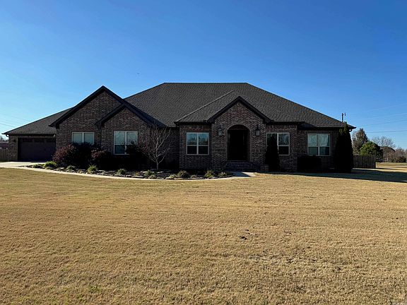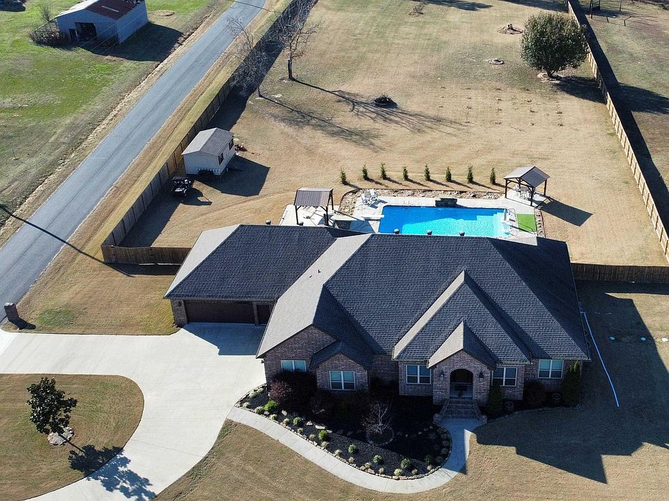 Welcome to this stunning 4 bedroom, 3.5 bath home situated on 3.09 acres of picturesque land with a 20'x44' in-ground pool! Built in 2017, this 3215 sq ft residence offers a perfect blend of luxury and natural beauty. The kitchen features a commercial refrigerator/freezer, double convection oven, 2 sinks, an island and a huge pantry. Spacious living room has fireplace and overlooks patio/pool area. Master bedroom is separate with master bath having 2 vanities, tiled shower and walk in closet that is attached to the laundry/mud room. The other bedrooms are also spacious with walk in closets. TWO 2 car garages...one is 22x31 and makes a great SHOP while the other has storm/shelter saferoom and a staircase to the floored attic for additional storage. Covered patio with outdoor kitchen, completely fenced back yard, storage building with electricity, 2 covered pavilions that also have electricity. Plum trees, apple trees, blackberry and blueberry bushes..... Just gorgeous!!!!