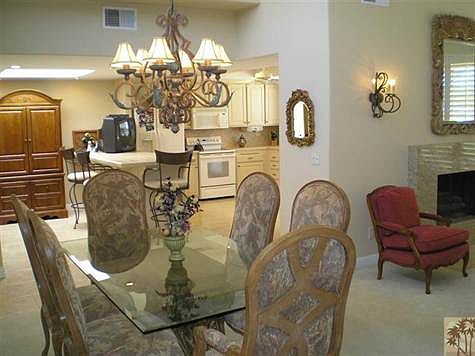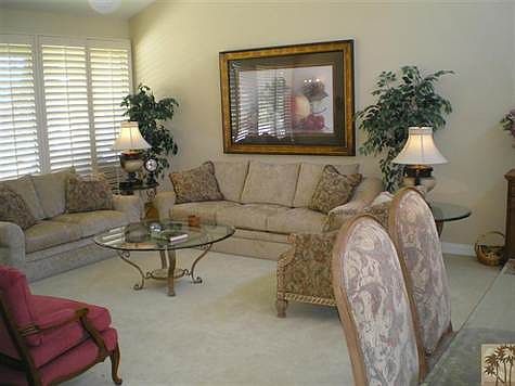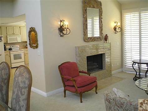 Fabulous fairway and expansive, panoramic views from the extended patio of this extensively upgraded, move in ready 300 Max Plan. Sits high on a bluff, away from cart paths, simultaneously affording privacy and a sense of openness. Recessed lighting, 18 in. tile flooring in living areas, designer paint, plantation shutters, and ceiling fans throughout. Beautiful kitchen remodel features tile counters, added counter space, updated hardware, and newer appliances. Kitchen wall has been removed and atrium has been converted, creating a seemless flow from the kitchen to living areas. Wonderful tile, lighting & hardware in remodeled baths too. Just steps from a community pool & spa. Offered furnished per inventory list. This property is ready to go! Brokered And Advertised By: Windermere Real Estate Listing Agent: Joan, Diane & Michele