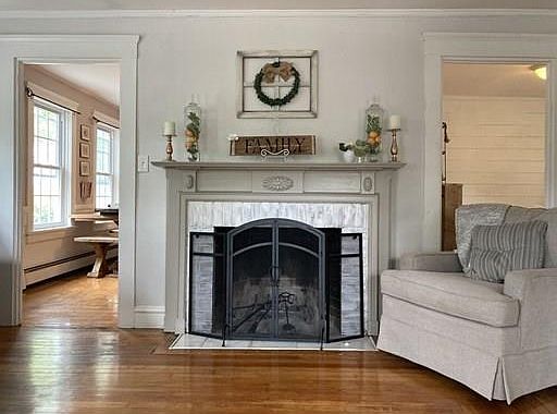 Make this beautifully restored colonial home yours! Historic features have been artfully combined with sought-after modern living spaces. A thoughtful floor plan with stunning wood floors , stainless steel appliances in the kitchen , a sun-lit living room with a wood burning fire place , spacious dining room for entertaining , first floor half bath and laundry room. The second floor includes three bedrooms, decorative barn style doors and a renovated full bath. Bonus third floor is perfect for a playroom or study area. The outside features a cozy front porch , gathering area and a three car garage / workshop. Title V is scheduled for August 18th. This is a must see !