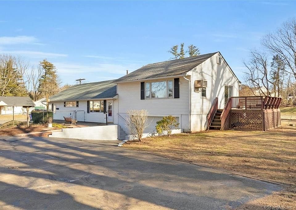 Don’t miss this one! AWESOME location on the Glastonbury line for this SPACIOUS 3-bedroom, 1.5-bath vinyl sided RANCH home nestled in a QUIET East Hartford neighborhood boasting nearly 1900 sq ft. Fire-placed living room with built-ins. The eat-in kitchen provides ample cabinet space, while a LARGE level private FENCED backyard and deck invite outdoor enjoyment. HUGE bonus room off the kitchen offers what could be an AMAZING primary suite; complete with a wet bar, A SECOND fireplace, sliders to the deck & a 1/2 bath. Other great features of this home include a 2 car attached garage, generator hook-up, central air & an enclosed front porch. Fuel is propane with an underground tank. 164 Manor Circle is located just minutes from highways, schools, shopping & dining. 10 minutes to Downtown Hartford & Glastonbury Center. Available for a quick closing!