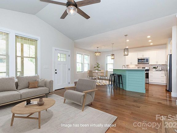 This modern South Asheville cottage offers energy efficiency, thoughtful design, and local convenience. The chef’s kitchen features a large island with breakfast bar, tile backsplash, undermount sink, and GE stainless appliances. Vaulted ceilings and abundant natural light enhance the open layout, while the spacious primary suite includes a walk-in closet and custom tile shower. A $30K+ solar system with 22 panels (2023) is owned outright and ready for optional battery storage. The fully fenced backyard is a private retreat—enjoy a sunny patio, raised garden beds for vegetables or flowers, and plenty of space for pets or play. The standing-height crawlspace adds valuable storage and a workshop area. Located in Biltmore Heights, just minutes to Biltmore Village, downtown Asheville, and nearby trails. Schedule your showing today and discover low-maintenance, eco-conscious living in a prime location!