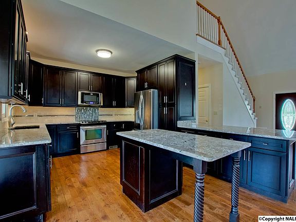 Dreaming of a wrap around porch & privacy? Need a 4 car+ garage and a garage apartment? Wishing for a Basement home? All this and more just a short commute to Redstone Arsenal or Research Park!Highly updated home has a spacious Master on the main floor with stylish tile/wood floors and a Master ensuite featuring walk in shower with free standing tub. Spacious living area with wood floors, fireplace and vaulted ceiling. Kitchen has been completed remoldeled in 2016 with new cabinets, appliances, granite and backsplash. Finished basement has bedroom, media room and flex space. Upstairs loft area has full bath. Approx 1300 sq ft finished garage apartment. Backs to trees with wildlife gallore!
