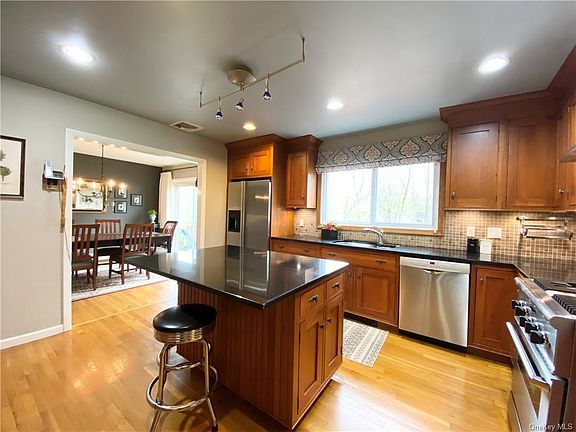 Work from home Elegant Raised Ranch in the desirable Chilmark neighborhood. Nearby schools, shopping, restaurants, and Express Metro North Train. Nearly a half acre of park like grounds with gorgeous plantings. Three bedrooms, 2.5 baths and a large office, this incredibly spacious family home has room for everyone Beautiful oak floors throughout, large chefs kitchen opens onto the dining room and family room- the heart of the home Master suite features luxury bath and large closets. The ground level features a huge recreation room, large office w/ windows, access to the 2 car garage w/ storage space. Set on one of Briarcliff Manors most desirable neighborhoods and having the convenience of NYC under an hour away, completes the package.