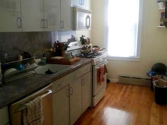 Fantastic location! Beautiful two bedroom Rail Road style with separate home office apartment. Unit is located in Greenpoint across scenic McGorlick Park. Walking distance to G train on Nassau Ave. Apartment features: eat-in kitchen with lots of kitchen cabinets. Large living room with two windows, two bedrooms with home office, closets galore. Hardwood floors throughout. Nice, tiled bathroom with bath and shower. Cable ready. Monthly rent is $2,600.00. Available July1st,2018. Sorry, no pets.
