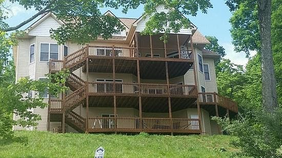 Stunning Lake View! 6 BR, 4.5 bath Home with extra lot. Covered deeded Boat Slip in Gated community with Private launch, clubhouse & pool. 3 levels with breathtaking views. 2 main living quarters with full kitchens & 1 lower level with Master Bedroom, Bath & Rec area.