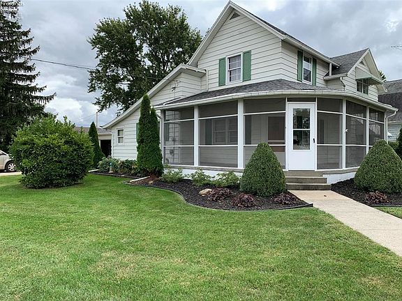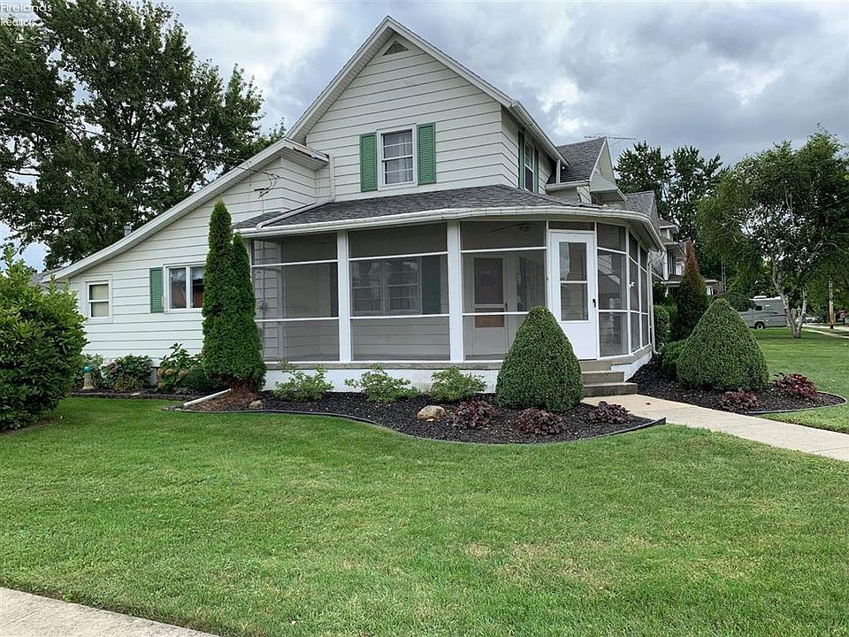 IN Town, Great Location, two story, 3 BR, one bath, eat in kitchen, formal dinning room, large living room with 2 bedrooms upstairs, nice size closets and attic storage.Basement consists of one room for furnace and hot water heater . Many updates including Roof, Central Air condition, Updated eat in kitchen, many cupboards. Detached two car garage andwrap around screened-in porch. Nicely landscaped, large lot 72 x 146.This home has been well taken care of, just ready to move in.