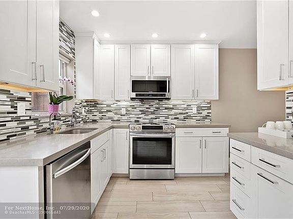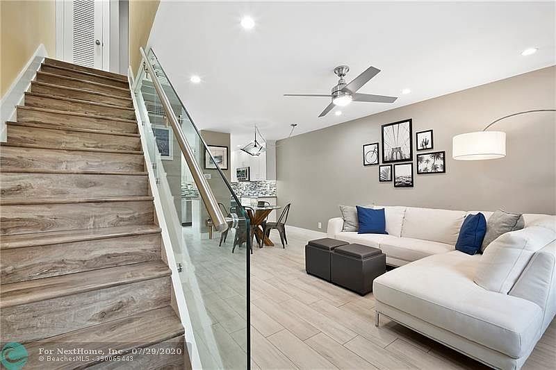 Beautifully remodeled 2-bedroom, 1.5-bath townhouse available just a few blocks from the world-famous Wilton Drive! Entertain with a sleek open kitchen featuring white soft-close cabinetry, quartz countertops, an elegant tile backsplash, and a matching suite of stainless steel Samsung appliances. A sunny private patio--great for gardening and grilling--keeps the entire space bright and airy. This place checks all the boxes: totally renovated, new A/C, tankless water heater, impact windows, washer/dryer in unit, gorgeous tile floors throughout, ceiling fans in every room, private outdoor space, low HOA, pet-friendly, assigned parking spot, plenty of guest parking, and a fabulous community pool! This turnkey townhouse looks even better in person! This is the one you will want to call HOME!