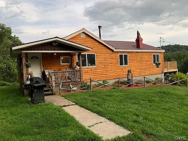 Small Farmette in the Adirondacks on 18 acres and bordering over 3000 acres of state land. Set at the end of a dead end road is this open floor plan, log sided ranch with total privacy, currently a small farm with beef cattle, goats, pigs, and chickens. Wonderful pole barns for equipment and animals. Plenty of woods so you can heat with wood, some fenced fields. If your goal is to hunt, snowmobile, hike in the woods, it is impossible to get a better location. Local streams have native brook trout, lakes for boating are nearby. Make your dream come true!