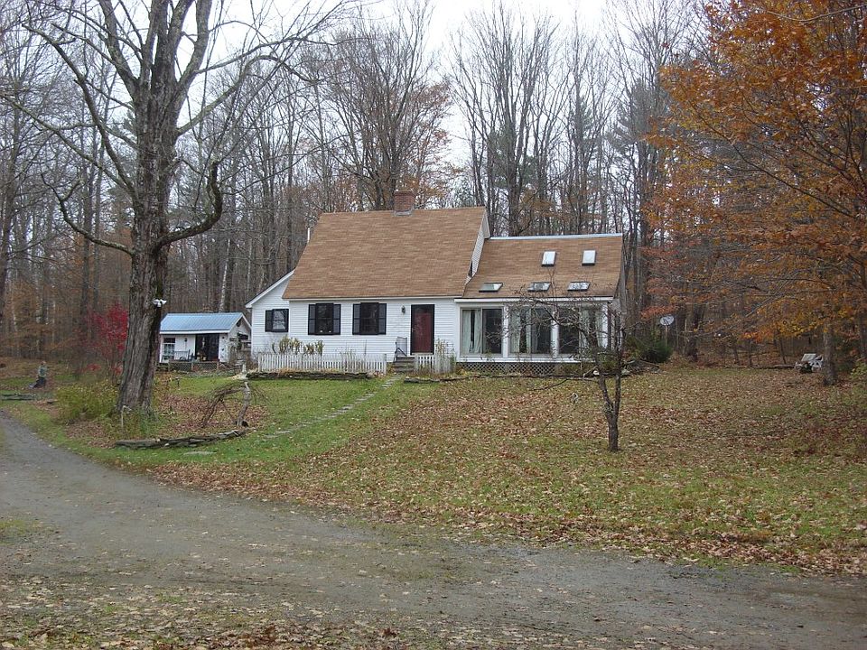 This is a beautiful country home on 11.8 acres surrounded by lovely old stone walls. A warm and welcome feeling greets you as soon as you enter the door. The first floor displays gorgeous exposed beams. While it is only a two bedroom home, this place offers ample space to spread out with family and guests. There is a mudroom with laundry appliances, a full bath, an open concept kitchen/dining room, a walk-in pantry, a living room, a library, an office, and a three season recreational room. A large deck provides the perfect area for outdoor entertaining. Upstairs there are two bedrooms with a loft area and a full bath. Skylights flood the upstairs with cascades of natural light. There is also an adorable studio for your over night guests, which can be converted into an art studio or whatever you desire. Outside is a large barn/garage with power. A convenient wood shed will keep your firewood dry. The stunning variety of perennials will be blooming from spring until frost. Fully grown blueberry bushes abound and there is plenty of area to garden. You will keep your privacy, being surrounded by mature forest. Welcome to the country and enjoy your homesteaders paradise.
