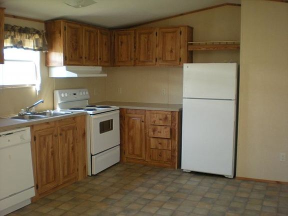 The mobile home is a 3 Bedroom, 2 Bath, there is a stove, refrigerator, dishwasher, there are washer/dryer hookups, and there is central ac/heat. There are pets allowed at this property, there is a $300.00 NON-REFUNDABLE PET DEPOSIT. $25 CASH CREDIT APPLICATION!!