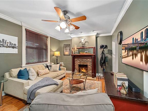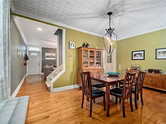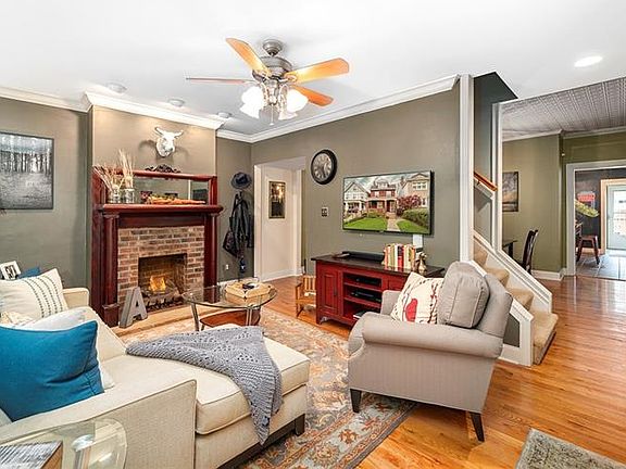 Beautiful brick home filled with charming details and updates! A covered front porch welcomes you inside into the living room featuring crown molding, a brick fireplace highlighted by recessed lighting, and hardwood floors that flow into the dining room. The formal dining room features a custom ceiling, a modern chandelier, and opens to the kitchen. A perfect blend of industrial elements and modern amenities graces the kitchen. Subway tile backsplash, granite counters, stainless steel appliances, and a fun chalkboard wall, just to name a few! Off the kitchen is the main floor bath updated with modern vanity, sleek tile surround in the shower, and stylish encaustic tile flooring. On the second level, you will find 2 bedrooms and a spacious full bath with double sink vanity and tiled shower. The third floor hosts a third bedroom with a den/office area. The outdoor space includes a fenced-in backyard, a patio, and off-street parking! Great location near restaurants, shops, and downtown.