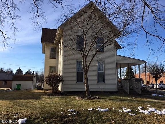 Perfect small town living at the perfect price! This 3 bedroom, 2 full bath colonial is located in the center of Bolivar. Spacious corner lot with just the right amount of trees and landscaping. Wave hello to the neighbors from the large front porch. Patio pad and pool will be perfect for enjoying the summer! This beautiful home has tons of original character plus lots of valuable updates. In the huge kitchen you will find lovely solid oak cabinetry and a massive center island. The new acrylic countertops, laminate floors, gas range, refrigerator and updated lighting are all new within 3 years. Living room and dining room carpet is only 4 years old. The addition adds a combo first floor laundry and full bath, as well as a cozy enclosed back porch. Upstairs you will find 3 bedrooms and another large and fully updated bathroom. The master bedroom has lots of closet space and an adorable window seat. You will have plenty of room for all of your storage needs in the walk up attic. This may even be an area you would want to convert to living space! There are also 2 sheds in the back yard for all of your tools and lawn equipment. This home also has a new roof (4 years), hot water heater (4 years), furnace (5 years) and A/C (5 years). Ladder and pump for pool in the basement. All dates approximate. Call for your showing today!