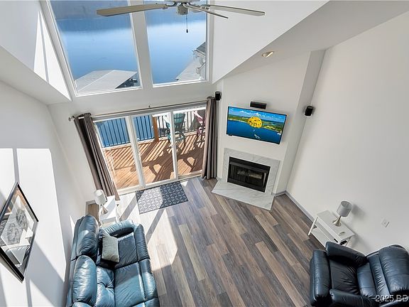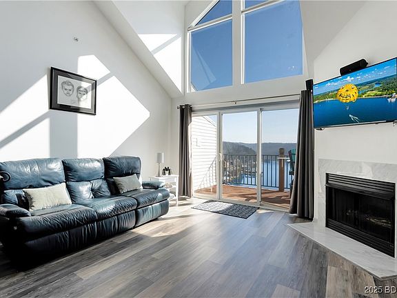Experience luxurious lakeside living in this stunning 4-bedroom, 2.5-bathroom condo, designed with an open-concept layout that bathes the space in natural light. The living room boasts vaulted ceilings and is overlooked by a spacious loft, providing a panoramic view of the serene lake. Enjoy seamless access to your residence and dock slip via a convenient ELEVATOR and handicap ramps to the dock! This turnkey property includes a generous 12x32 boat slip, perfect for your summer fun. A new HVAC system, installed in 2020, ensures year-round comfort. Whether you're entertaining guests or seeking a peaceful retreat, this condo offers the ideal blend of comfort and elegance.
