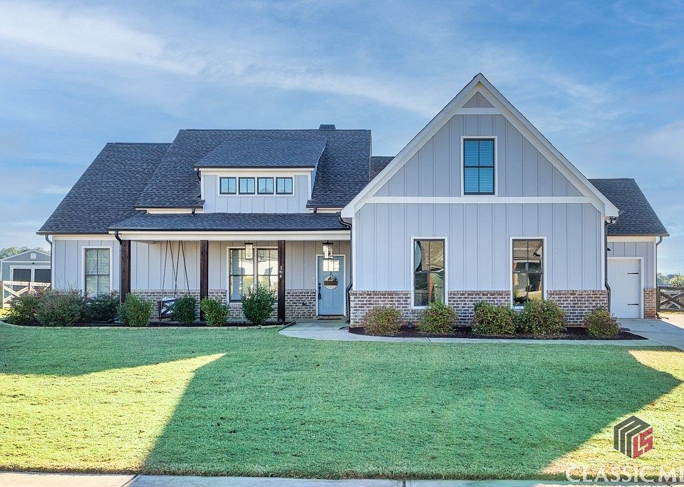 This one's a keeper! Nestled in highly sought after Perkins Landing this modern farmhouse charger is the perfect place to call your next home. Only a few years young built in 2020. Your outdoor area features a covered back porch with a fireplace and conversation area. The backyard overlooks a pond and you can watch the prettiest sunsets! Located on a prime lot with fenced backyard. This home boasts upgrades galore! Off the kitchen is a mud room with build-in bench, laundry room which has access to 3rd garage and a conveniently located walk-in pantry. The gourmet kitchen features a large breakfast bar, dining area, tile backsplash, stainless steel appliances, wall oven, separate cooktop and granite countertops. The private master bath with walk-in closet and tiled floors, double vanities with granite countertops, and large walk-in tiled shower! This home features 2 spacious additional bedrooms on main level. The second floor offers a bonus room/large bedroom with its own full bathroom. Great for guests, teenagers or office workspace! 3 car Garage! Perkins Landing is a small 19 homesite community. Conveniently located off Hwy 316 and offering an easy commute to Atlanta, Athens or Bethlehem shopping. This modern farmhouse won't last long!