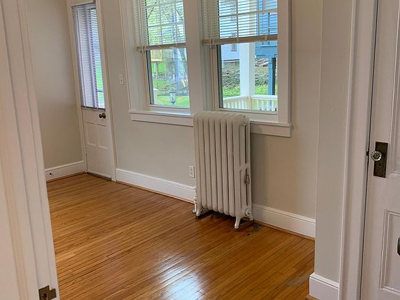 This unfurnished apartment is in a 4-unit historic building in the historic district of South HIll. It is on the ground floor, has hardwood floors, high ceilings, and a smalll galley kitchen with a new glass-top electric stove. The south bedroom, which can also be a study, has a side door leading out to a side porch. Across the street is a City Park, so this is a quiet, low traffic area just a three-block walk from the shops and restaurants on Market St. Washer/dryers are available in the adjoining building at no cost as is a lockable storage room for this apartment.