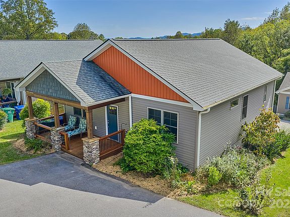Amazing modern build is turn key & ready for you! Located just blocks outside the city limits this spacious home packs a huge punch at this price point! Beautiful open floorplan with vaulted ceilings gives you flexible living space with the gas fireplace as the centerpiece. Kitchen comes equipped with lots of cabinet space, tile backsplash, granite countertops and apron sink. Step into the large primary with vaulted ceilings and a gorgeous private bath with dual sinks, custom tiled shower and large walk in closet with adjustable shelving system. This house boasts larger than average guest rooms and another tastefully done guest bath off the main living area. You'll find an elevated back deck just through the laundry room for back yard hanging and grilling, or enjoy the large front deck for entertaining. Drive through parking area in the driveway makes it easy to come and go and there's an extra parking pad out back convenient to the EV charger on the back side of the home. Large basement with concrete floor offers lots of flexible storage/workshop/home gym options and has large French doors to accommodate bringing in and out larger items. No city taxes on this home but you're only 2.5 miles to Haywood Road, 5 miles to downtown Asheville and 8.5 miles to the Biltmore House!!
