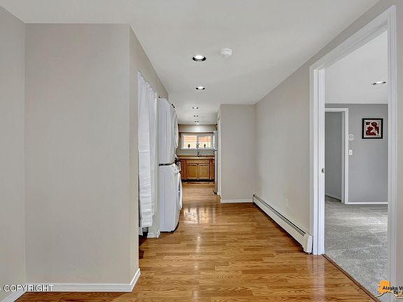Don't miss this stunning 2 bed, 2 bath ranch home near JBER. This charming turnkey ranch is impeccably clean & bodes new carpet, new vinyl flooring, new bathroom sink, freshly painted trim, doors, bathroom and entry way. Huge windows flood the living area with natural light. Fenced yard plus a storage shed. Artic entry is a is a bonus. Newer front load w/d will stay with full price offer.