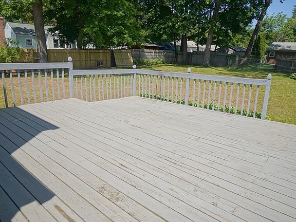 Hola! Nicely maintained vinyl sided home. First floor offers good size living room with brick fireplace, built in shelves and large bow window. Eat-in kitchen with open wall for view of bright formal dining room. First floor Bedroom with double closet. Plus half bath. Upstairs we have two good size bedrooms with plenty of closet space and full bath. Nice wood floors thru -out home. Vinyl windows. Clean basement with lots of possibilities. Updated heat system. Circuit breakers. Washer dryer hook ups and storage room . Great fenced-in yard with extra large deck and storage shed. Showings begin at Open House Sunday June 11th between 1:30 - 3:30pm