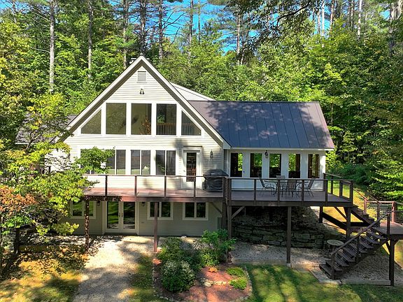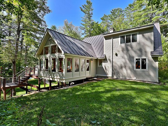 Sunny and light-filled contemporary home, well cared for and ready for new owners. Located in the Ludlow Lakes Region, this home enjoys deeded access to the shared beach and swimming area on Lake Pauline. The open living/dining area is perfect for entertaining and enjoying summer days or ski weekends. Hang out on the new deck overlooking the yard. Gather round the fireplace on a cold winter night or relax in the new den with the warm pellet stove. There are two bedrooms and a bath on the main level. On the upper level there is a bedroom suite plus a loft/office area. The lower level is set up as a recreation room and there is another full bath. Recent improvements include: new den, standing seam roof, deck, windows, mini splits and more. A perfect blend of comfortable living spaces with easy access to all area amenities including skiing and golf at Okemo, Lake Pauline and Lake Rescue.