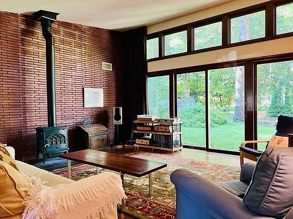 Available now! Within walking distance of town center and UMass Amherst Campus, this distinctly different and welcoming home will not disappoint. A dramatic first impression is had while walking through the front door. The spacious living room sports a vaulted ceiling with a wall of built-in walnut bookcases and an unobstructed view to the back yard where a plethora of birds come and go throughout the day. The kitchen is large and functional with plenty of room for 2 or more cooks and leads to the laundry/storage/utility room which connects to the carport. The floor plan is flexible and currently includes an office, 4 bedrooms and 2.5 baths. Amenities are many - a carport for 2 cars, garden/storage shed, woodstove and more. Minutes to major routes, shopping and conservation areas.