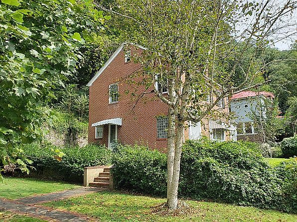Warmth and beauty of a lovely 2 story brick home is enhanced with hardwood floors throughout, Dove White paint in hall, Blizzard Fog paint in Living and Dining Room with Satin White paint in Bedrooms. Carpeted Den which is off the Living Room next to Fireplace has large glass window allowing sun to radiate the room. Master Bathroom has tile shower/bath and floor with new wooden vanity and mirror. Large Master Bedroom is on the cool mountain side of the house. Second floor balcony is off the sun-side guest Bedroom. Large attic could serve as a bonus room or storage. Basement has a large tiled Bathroom floor with glass corner shower, room for 2 offices, Laundry Room, and Tool Room. House has gas fueled water radiant heat, window a/c units, gas hot water, public water & sewer, asphalt shingle roof. House is built on the side of a mountain 43 steps up from roadway with no driveway. Four parking places are across the street.