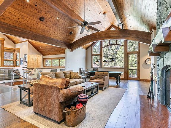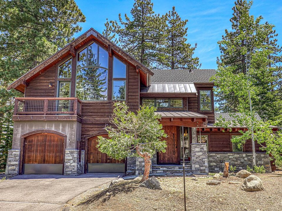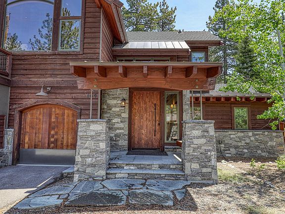 From the moment you enter this newer Dollar Point home you will experience the sense of space. The open staircase leads to the great room with impressive arched wood beams. The beams create a theme that is carried on by the arches in the large windows at each end, the arch of the fireplace, and the arch in the built-in cabinet. The unobstructed space of the great room sweeps the full length of the upper level of the home and leads on to a large back deck. The exposed cooper top of the bar is unique and the cooper design is complemented by the cooper backsplash in the kitchen and the inlayed cooper accent tiles in the upstairs powder room. The back deck offers a natural gas fire pit and BBQ. Whether indoors or out this is a wonderful place to entertain family and friends. There is even a peek of the lake from both back decks. On the entry level the master bedroom suite is in its own wing and there are two additional bedrooms and a bathroom. To enjoy year-round and protected from the winter snow, there is a lower deck with a hot tub accessed by a covered walk way. There is also a horseshoe pit at the rear of the home. Designed by local architect John Shoberg for the owners to meet their Tahoe lifestyle aspirations, the home was completed in 2014 by Fellner Construction and the quality of workmanship and attention to detail is evident throughout. With a few exceptions the home is being sold almost completely furnished so it is move in ready for a new family to begin enjoying immediately.