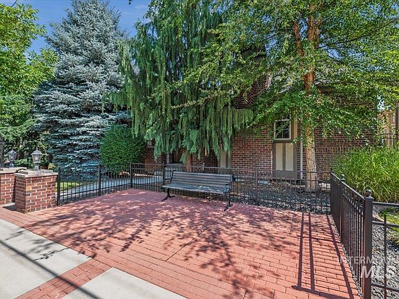 Ideal low-maintenance, main-level living in adorable downtown Eagle! This patio home has soaring ceilings gorgeous brick archways and woodwork, harwood floors, surround sound inside and out, 3 gas Fireplaces including one in the welcoming courtyard. The sophisticated downstairs office boasts a fireplace and wainscoting. The two upstairs bedrooms have walk-in closets and share a jack-and-jill bathroom. There is lots of room for hobbies or parking in the 3-car garage and you can feel extra secure with the gated entryway and intercom system. HOA fees cover building exteriors, roof, gutters and drainage, landscape maintenance, fencing. Newer roof and exterior paint and New AC units in 2022. Plenty of parking in the back! Potential owner-carry option.