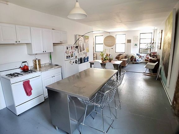 Creative types will be drawn to this gigantic, pre-war, brick-exposed gem featuring 1,000 square feet of rustic charm in urban Williamsburg. This is a vintage, 19th Century, floor-through apartment that occupies the entirety of the second floor which allows for maximum floorplan creativity, air circulation, noise control and privacy. Ten large windows invite an abundance of natural sunlight. Previous residents have taken advantage of the flexibility offered by this empty canvas of a floorplan, alternating between 1- and 2-bedroom configurations to accommodate their ever-evolving lifestyle needs. The current arrangement features one bedroom flanked by a bonus room that could be utilized as a nursery, office, den or walk-in closet. The oversized, alcove-style living room could easily be converted into a flex second bedroom. Upon entry, residents are greeted by a large, open kitchen area anchored by a stainless steel peninsula that doubles as a breakfast bar. Foodies will immerse themselves in a variety of culinary delights, such as local legends Rabithole for brunch, Pies 'n' Thies for a Southern BBQ lunch, Maison Premiere for afternoon oysters, Freehold for Happy Hour and Peter Luger's for dinner, capped off by a late-night date night movie at Williamsburg Cinemas -- a full day's worth of fun, all within a 5-block walk. Nestled on the corner of South 4th Street and Driggs Avenue, location is everything with an almost-impossible rating of 99/100 for Walkers and 100/100 for Riders. Your public transportation options into Manhattan are the J/M subway lines within 0.3 miles, the L/G lines within 0.5 miles and almost a dozen bus lines within 0.2 miles. Pet friendly with storage space for 3 bicycles. Virtual visits available upon request.