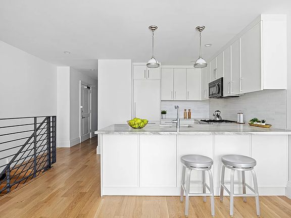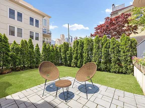 Conveniently located in beautiful, historic Fort Greene, this sleek and thoughtfully designed three-bedroom*, 2.5-bath duplex condo offers over 1600 square feet of interior space on two floors plus A PRIVATE GARDEN boasting over 700 square feet of outdoor space. The clean lines and modern, airy feel of this beautiful home are immediately apparent as you walk into the space. The gorgeous, expansive kitchen, which opens onto the living room, features marble counters and backsplash, a Bertazzoni range, Bosch dishwasher, Liebherr fridge, and tons of storage and work space. The breakfast bar provides seating, while the living area is certainly big enough to accommodate a dining table. With west-facing doors and windows which bring in stunning afternoon light, the living room opens directly onto the massive private garden. It's not hard to imagine spending time in this verdant space, gardening, grilling, entertaining or laying in a hammock! Adjacent to the living room is the first bedroom. With garden views and a large closet, this room is wonderful as is, but could be opened up to create an even larger living/dining area if needed. Down the hall you'll find the main bath with a deep soaking tub, subway tile and modern finishes and fixtures. The primary bedroom, which has French doors that open onto a Juliette balcony, overlooks the beautifully landscaped front courtyard. The en suite bath has herringbone marble tile floors, a polished marble walk-in shower, and Waterworks fixtures. Down the modern metal staircase you'll find amazing flex space. The enormous front room is currently used as one bedroom, but could easily be split into two rooms. Wonderful light comes in through the west-facing windows and a clever transom brings it into the center area. With under-stair storage and closets, room for a home office or workout area, a large laundry room, and a half-bath, the lower level of this home is substantial. Throughout the home you'll find central air, wide-plank oak flooring, high ceilings, and custom lighting. In addition TWO DEEDED storage cages come with the apartment. 164 South Oxford Street & 171 South Portland Avenue are part of one, sixteen unit boutique condo. Across the street from Oxford Street Park, a few blocks from Fort Greene Park, a block from all the great shopping and amenities on Fulton Street, and convenient to multiple subway lines at Atlantic Terminal and Barclay's Center, the location is unbeatable. Pet friendly too. (*Please note, while used as a three-bedroom, this property's legal description is as a two-bedroom with a lower rec room.)