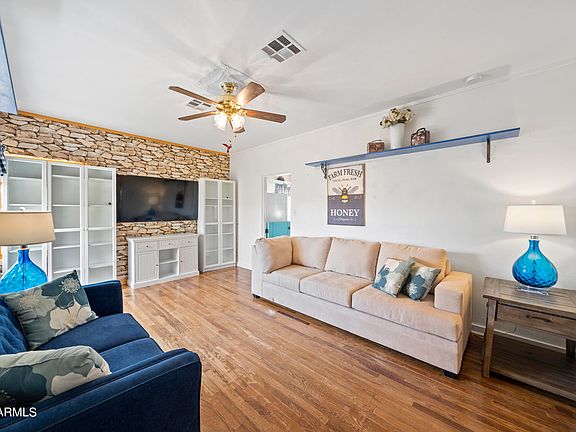 This Charming Home in Historic Wickenburg is just a couple of blocks to Downtown with great restaurants, unique shoppes, the Museum, businesses & more! Beautiful oak floors throughout the spacious living room, hallway and the two bedrooms! Full bath with a cool vessel sink! Updated kitchen with stainless steel appliances & gas range! Off the kitchen is a large Arizona Room, Air Conditioned 18'x22' Shop/Garage has new 220 Amp electric service for your welding, woodworking, etc The 3rd building, we call the ''Bunkhouse'' has heat and air and is ready to finish in to a Rental or additional living space! From the Alley it's easy access for your RV with hookup! This Historic Street is home to the Henry Wickenburg Museum! Enjoy small town life in this sweet home!