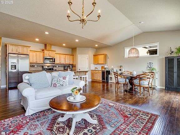 This delightful home has all the right touches — bright, open, and designed for easy living! The open-concept layout features a spacious great room with vaulted ceilings, a cozy gas fireplace, and a large eating bar that’s perfect for casual gatherings or morning coffee. The vaulted primary suite offers a peaceful retreat with its generous walk-in closet and comfortable layout. Enjoy outdoor living in the fully fenced backyard — ideal for pets, play, or simply relaxing in your own private space. With its sunny corner lot and comfortable layout, this home combines charm, comfort, and makes everyday living feel effortless!