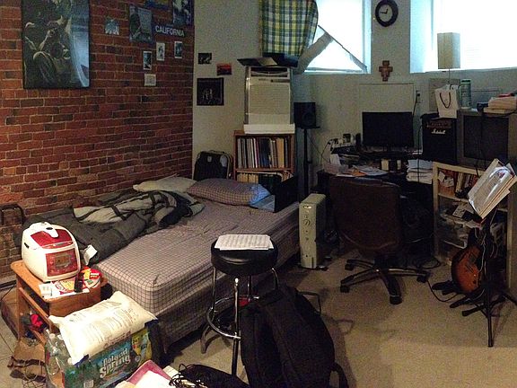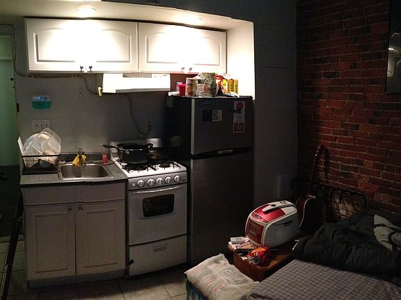 South End modern kitchen all white appliances update/ modern bathroom rustic brick wall cats allowed heat is included