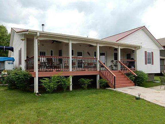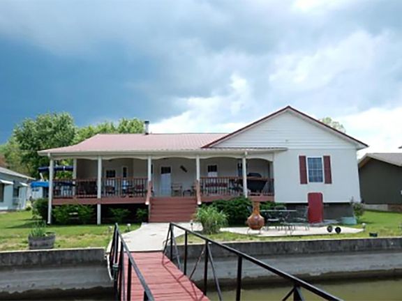 FLAT, FLAT, FLAT! Easy access to the lake from the covered deck with composite decking and metal baluster railings. Expect to be impressed with the ceramic tile flooring and 9' ceilings in the living room, kitchen & dining area. Wood burning stove in the living area could heat the entire home in the winter. Master bedroom suite has walk thru closet from bedroom to laundry to master bath without ever entering main area. Master also has 3/4 bath off bedroom area. 2 other bedrooms have access to lakeside deck with large bath & jetted tub at their disposal. 4th bedroom could be used as office/craft room. Huge walk in closet/storage room off main entry. Solid wood doors, interior trim, 4" baseboards were installed throughout the home. Abundance of beautiful wood cabinetry in kitchen. Concrete parking pad on east side for boat, car, etc. Close to two golf courses and only 4 miles to the center of town. Selling "AS IS" Property is in Flood Zone AE per FEMA.