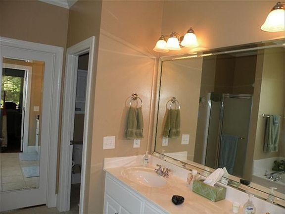 Pristine, move-in ready, brick 2 story in desirable Shoal Creek Subdivision has the perfect floor plan w/4 BRs and 2.5 baths. Hardwood floors and heavy moldings and lots of storage throughout the home. Kitchen has a bar & pantry. The main level master BR has vaulted ceilings, walk-in closet, Master bath w/dbl vanity, whirlpool and large separate shower. The family room has gas logs fireplace & lots of natural light, opens to screened porch overlooking gardener's paradise that has a 6 zone sprinkler system and drip irrigation system for the shrubs, beautiful custom gathering area in back yard and leads to a spacious open deck. There's under deck storage & crawl space. Has quick access to community pool & basketball hoop.