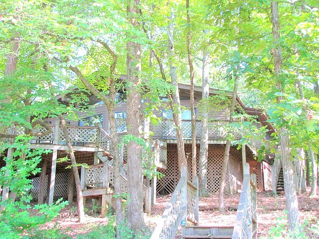 4BR, 2BA Waterview/Wateraccess cabin tucked into a beautiful private woodland setting. Large lot, deeded access to a nearby boat ramp, nice deck with waterviews and garage.