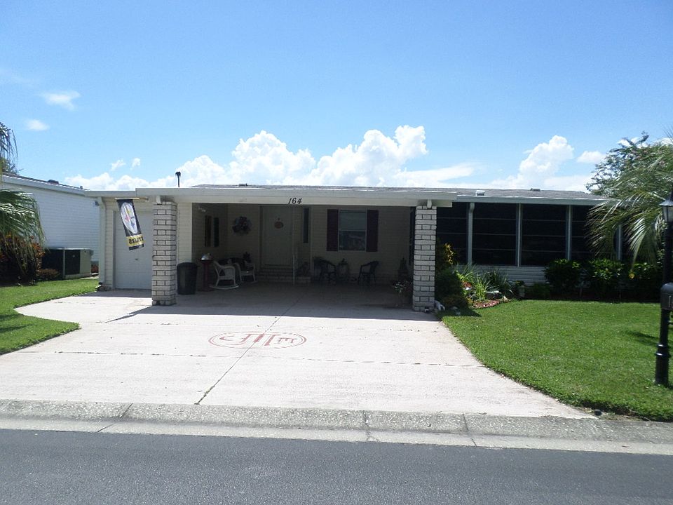 This is a must see home on the boulevard featuring views from front to back of golf and water. Walls are tape and textured except for the kitchen and bathroom. Your lanai is on the front of the home and large enough to have a seating and eating area if you like. The kitchen has a movable island and lots of storage and pantry area. Open concept living/dining room with a formal dining area or set up another table in the kitchen. The home has split bedrooms. The master features a separate vanity area moving thru to your bathroom with extra storage. The guest room is on the opposite side of the home and large enough for a queen bed. Painted double driveway with extra cart path leading to your storage shed large enough for extra storage and your golf cart.