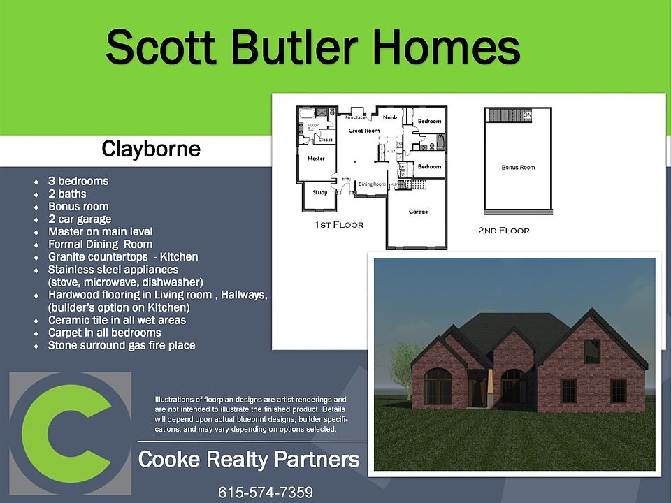 Great Open Plan! 3BR/2.5BA w/Sep Office, Formal DR, HDWDs, Ceramic Tile, Carpet in BRs, Ceiling Fans, Trey Ceilings. Granite & SS Appliances in Kit, Mst on Main, HUGE Bonus Room. Photos of Like Property. Clayborne Plan.