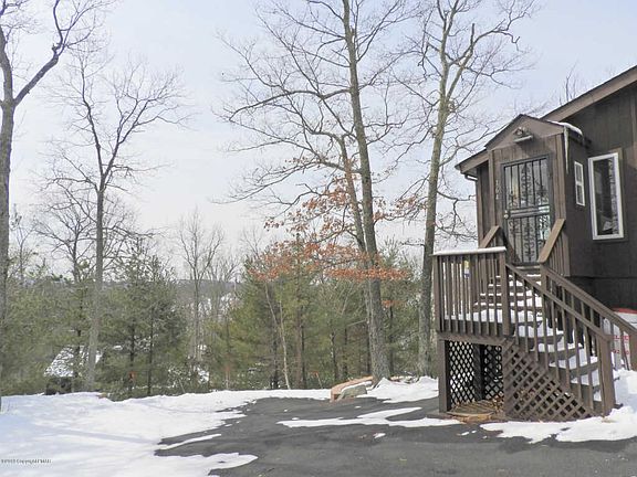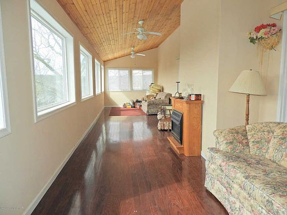 SPACIOUS Open Contemporary with 4 Bedrooms 2 Baths sitting on a DOUBLE LOT that comes with GREAT VIEWS from Living Room Sun Porch w/ PROPANE FIREPLACE. Family Room/Dining Combo w/ CATHEDRAL CEILINGS & BRICK FIREPLACE. Laminate flooring throughout living areas & bedrooms. 2 Bedrooms on First Floor, one with vaulted ceilings & other bedroom with Jack&Jill Bath. Tiled Kitchen w/ NICE amount of counter space. 2nd floor with 2 Bedrooms & Bath. Stand up ENCLOSED storage closet. Paved Driveway. Paver Retaining Wall. Call Today for a PRIVATE Showing of this beautiful home!