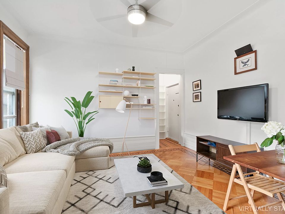 Sun filled one bedroom co-op in picturesque Park Slope. Enjoy prewar details such as ornate original wood flooring, parlor height windows with wood trim and elegant base board molding. The updated, windowed kitchen features shaker style wood cabinetry and a stainless-steel appliance package. A stylish bathroom boasts crisp white tiles highlighted by elegant silver metallic finish tilework and a high-end basin sink with polished nickel fixtures. The spacious, West facing living area overlooks neighboring tranquil gardens and stately homes. Retreat to the south facing bedroom with chic white exposed brick and ample space for a home office. 164 Sterling Place is an immaculate, self-managed coop on a historic street in the heart of North Park Slope. On a block voted one of the Greenest in Brooklyn for years, this tranquil street will charm you with historic details and flower-filled window boxes. Best of all, 164 Sterling Place features a landscaped, furnished common garden. Enjoy visiting Prospect Park around the corner from your apartment, collect the freshest of produce as well as a variety of other locally produced items at the year-round Grand Army Farmer's Market. You will also embrace the proximity to the Brooklyn Library, Brooklyn Museum as well as the Brooklyn Botanical Garden. North Park Slope also offers the ease of everyday amenities along 7th avenue and Flatbush Avenue as well as a multitude of transportation options which include the 2,3,B or Q train.