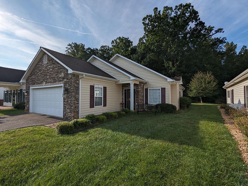 Nice patio home in Rocky Mount providing 1 level living with POA fees providing for lawn care. Heat pump replaced in 2021. Stone/vinyl exterior with 2 car garage, rear patio, gas logs, open floor plan, plenty of storage and paved driveway. Office provides third bedroom potential and has no closet. Great location and floor plan. Taxes, sq. footage and year built based on county records.