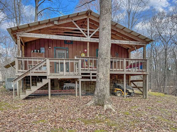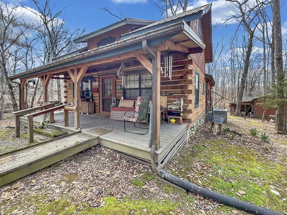 Nice & Cozy 1.5-Story Cabin on just over 6.8 Acres! Very private, country setting but still within minutes to town, LBL, Barkley & KY Lake. This home offers a spacious living room with wood burning fireplace, eat-in kitchen, laundry room, and master bedroom w/full bath on the main level, two additional bedrooms upstairs, and large covered front and back porches with two large storage buildings out back w/electric. Wet weather creek on property Deed Restrictions apply and are on file. The property is selling AS-IS.