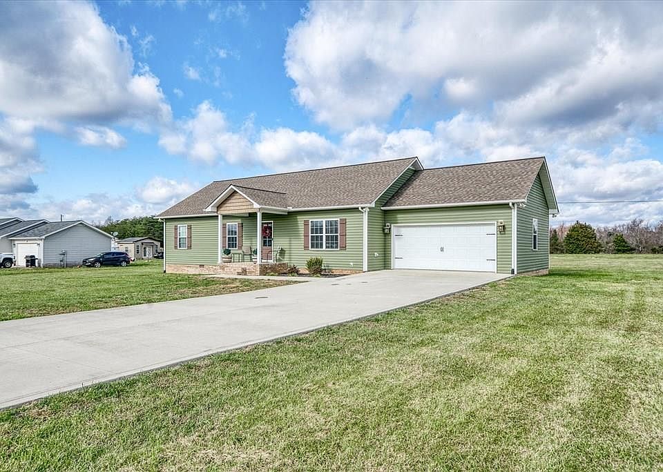 This move-in-ready home offers great curb appeal, a functional footprint, & trendy finishes - located in the quiet Sunny View neighborhood! Just a quick 10 mins to Cookeville Regional, TTU, & downtown Cookeville, the location is ideal with a quick commute to town. The welcoming covered front porch sets the tone for the home! The large open living space features a living, dining, & kitchen combo, each with their own distinct space. The kitchen features s/s appliances & granite countertops. Easy access to the back patio for outdoor living! The spare bedrooms are a great size with large closets & are centrally located near the guest bathroom. The convenient one level home features a large primary & ensuite with double vanities, diming lighting, & linen closet. On 0.7 acres, the outdoor experience is endless - grow a garden, let the family run around, or simply enjoy the space! 2018 roof, HVAC, & water heater - this like new build offers peace of mind, wrapped up in an attractive package!