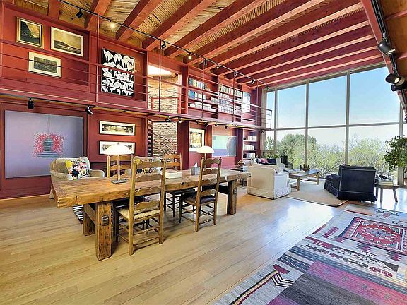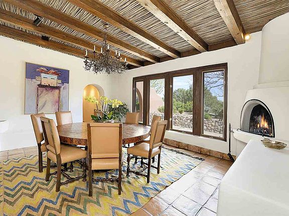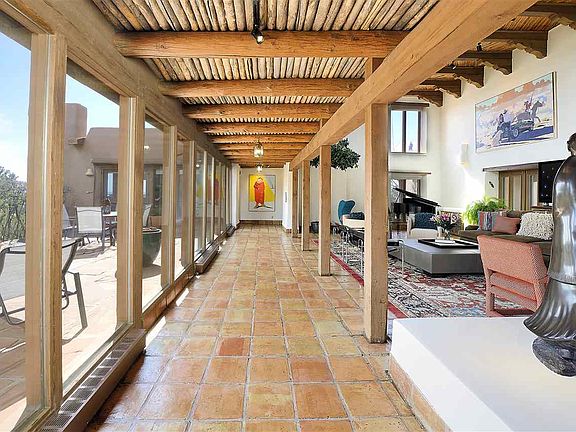 A rare opportunity to purchase a prestigious 20 acre estate on Tano Road! This extraordinary compound includes an approximate 7,000 square foot adobe main house, a separate guest house/office/ library building, an artist studio, a greenhouse, an additional garage building, a large storage building, and a separate wine cellar. Two master suites on either end of the grand living area afford total privacy. The east wings secluded guest suite is equipped with a separate drive up entrance, a renovated bathroom, and walk-in closets. The west wings master suite-- on two levels--with his and her bathrooms, dressing rooms and closets, and a luxurious art-deco inspired boudoir with mirrored closets and built-ins. Throughout the main house 6 fireplaces, bancos, latillas, corbels and hand-painted tiles channel old-world New Mexican charm. An additional loft bedroom located above the living room, a dining room, kitchen with dining area and a large chefs pantry complete the well-appointed main house. The freestanding presidential quality library (and office) is equipped to house 10,000 books on two levels, the second level accessed by a spiral staircase. With 20-foot floor to ceiling windows looking out over the property towards the mountains, the library is the highlight of this peaceful light-filled retreat. The estate includes a well-appointed art studio with separate bathroom. Dont miss this opportunity to own a compound on Tano Road and create a Santa Fe legacy property.