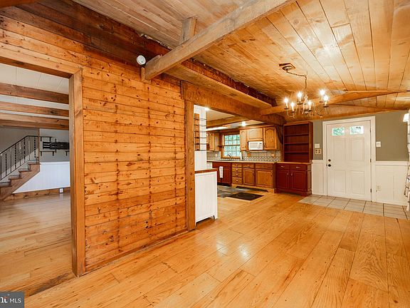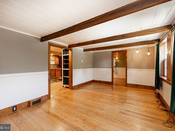 Charming 3 bedroom 2 bath cape with tons of character. Upon entering the front door into the living room where you are greeted with wood floors and an open beam ceiling adjoining the beautiful rustic kitchen with large dining area boasting an abundance of wood cabinets, tile countertops and backsplash, new deep farm sink, wood ceilings and flooring. The huge first floor master bedroom with wood floors, double closet and laundry hookup is sure to please. The lovely 1st floor bathroom has been completely remodeled and features tile walls and flooring. Upstairs there are 2 additional nice size bedrooms. There is a partially finished basement with full bath, a toasty wood stove with large ceiling grate that will economically heat the entire home. There is also a separate private home office/workshop. Many other great features and updates including new furnace and gutters in 2017, roof & septic system(2010), wood and stone patio area perfect for entertaining and 2 storage sheds. 100% first time homeowner conventional financing available.