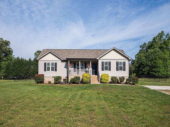 Adorable ranch split bedroom floor plan. FENCED BACKYARD! Enjoy tranquility on rocking chair covered front porch. Vaulted ceiling in family room. Kitchen with granite counter tops, pantry, electric range, microwave, dishwasher, refrigerator, lazy susan and can lighting. Breakfast Room features lots of natural light coming in. LARGE primary bedroom with walk in closet, ceiling fan/light combo, double marble vanity, walk in shower and linen closet. Spacious laundry room. Nice size deck to enjoy. Plenty of space for outdoor activities, entertaining and gardening. Great location! Convenient to Hillsborough, Durham, & Chapel Hill. 1.12 ACRES.