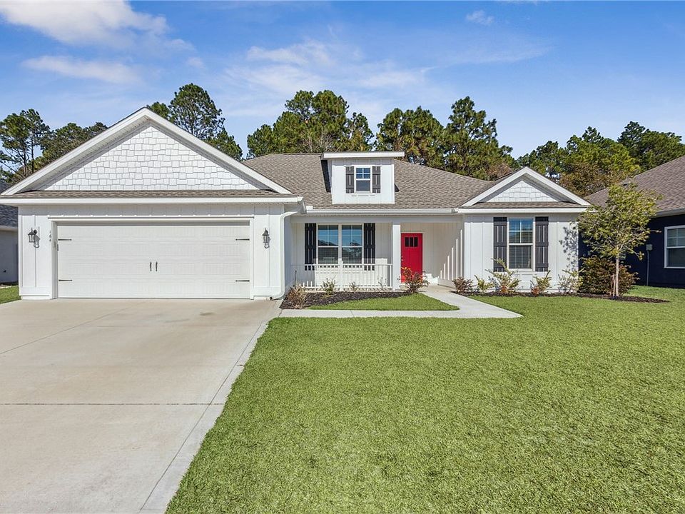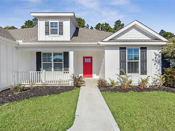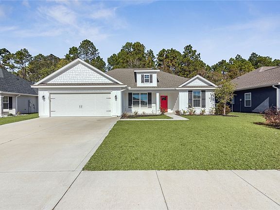 This desirable Josselyn Homes floor plan offers 3 bedrooms, 2 bathrooms, office/flex space with barn doors, open concept living and a split floor plan. Interior upgrades galore with tile flooring throughout, quartz countertops, soft close cabinets, oversized pantry, crown molding & walk-in L-shape shower in primary bath. Exterior upgrades include built in irrigation system, low maintenance concrete board & batten siding, gutters, fenced backyard, screened back porch, additional patio, hot & cold spigot by the garage for dog wash! **Seller is licensed real estate agent GA#366664/FL#3566492