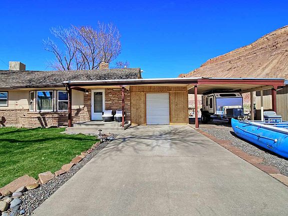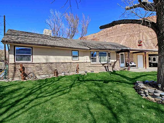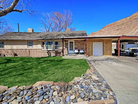 COMPLETELY UPDATED rancher in Palisade! The main living space is open with natural light from the large bay window in the front and from the french doors that lead to the back patio. The modern kitchen is complete with stainless appliances, tile back splash and a large breakfast bar. Plenty of space with two comfortable bedrooms and a large third room with cozy fireplace that would make a great den, office or third bedroom. This house features a spa-like full bathroom with walk in shower, double sink and sleek tile floors in addition to an en suite half bath. The location is perfectly tucked at the end of a quiet cul-de-sac that backs up to an orchard, has an AMAZING VIEW of Mt. Garfield and is within walking distance of downtown Palisade! Both the front and back yards are fully landscaped with trees, covered decks, open patios and a hot tub! Call today to schedule a showing!!