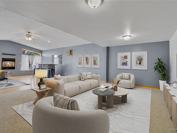This 4 bed, 1.5 bath home is ideal for hosting large gatherings and has ample room for all the "stuff". Front living/dining area includes a wb fireplace to cozy up to around the table, spacious great room has a gas fireplace, walls of tall bright windows, suitable for multiple layouts to fit your lifestyle. Both entertaining areas have patio doors to the outside deck which gives this home great "flow" and layout. The center kitchen is conveniently located between both entertaining areas and has room for additional cabinetry. With over 2400+sqft on almost a full acre of property, double wide driveway, 2 car attached garage in the city next to the school and playground this home is ideal for the expanding home owner.