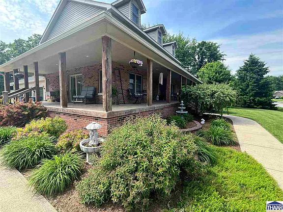 Beautiful, custom built two story home in rural western Vigo County in Westfield Subdivision. The stamped concrete wrap-around porch invites you inside and is the perfect place to relax! Inside, the main floor features a large living room, huge kitchen with open dining and breakfast bar. Upstairs, there are a total of 4 bedrooms and 2 full bathrooms. The primary suite has a nice sitting area and the master bath is a great size with double sinks, jet tub, and separate shower. The 3 additional bedrooms on the 2nd floor are all a great size with large cedar lined closets. The finished basement has a large family room, kitchenette area, flex room (used as 5th bedroom), 4th full bath, and office/storage room. The oversized 3+ car garage is insulated with the option for climate control. Out back, there is a large stamped patio with propane fire pit and grill area that leads to the covered sitting area and additional half bathroom! Recent updates include: New roof (2024), Upstairs HVAC (2020), water heaters rebuilt (2025), refinished hardwood floors (2024), new carpet (2024), fresh paint (2024-25). Call or text a local agent to find out more or schedule a tour!
